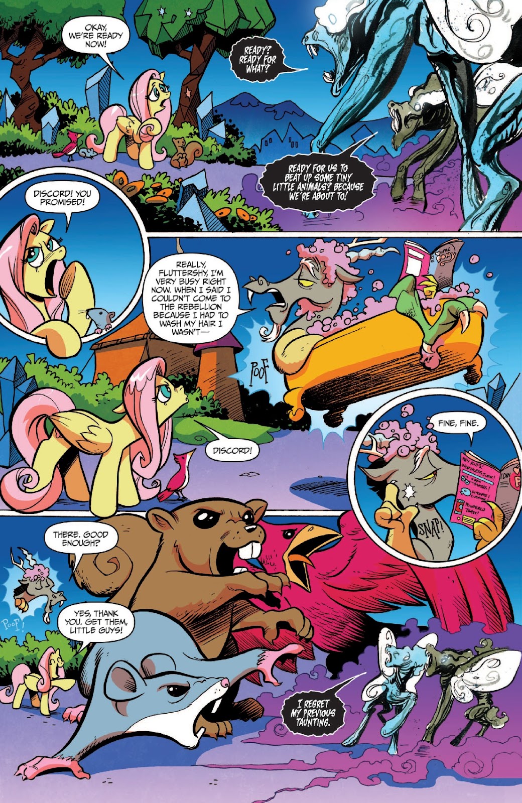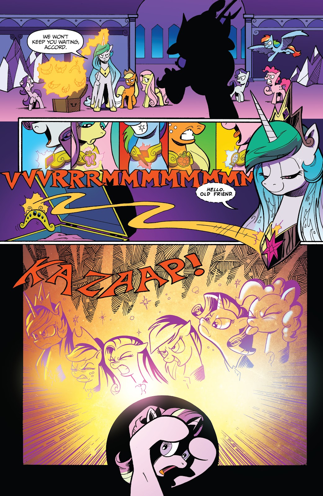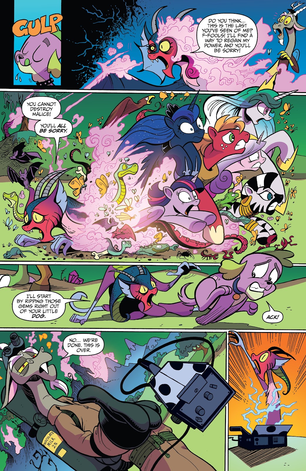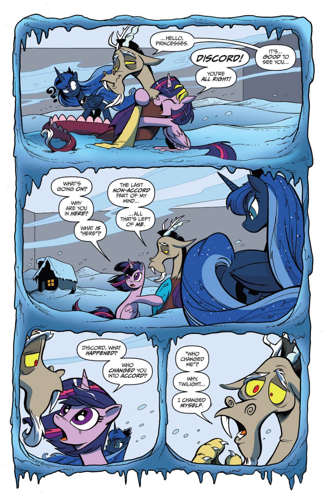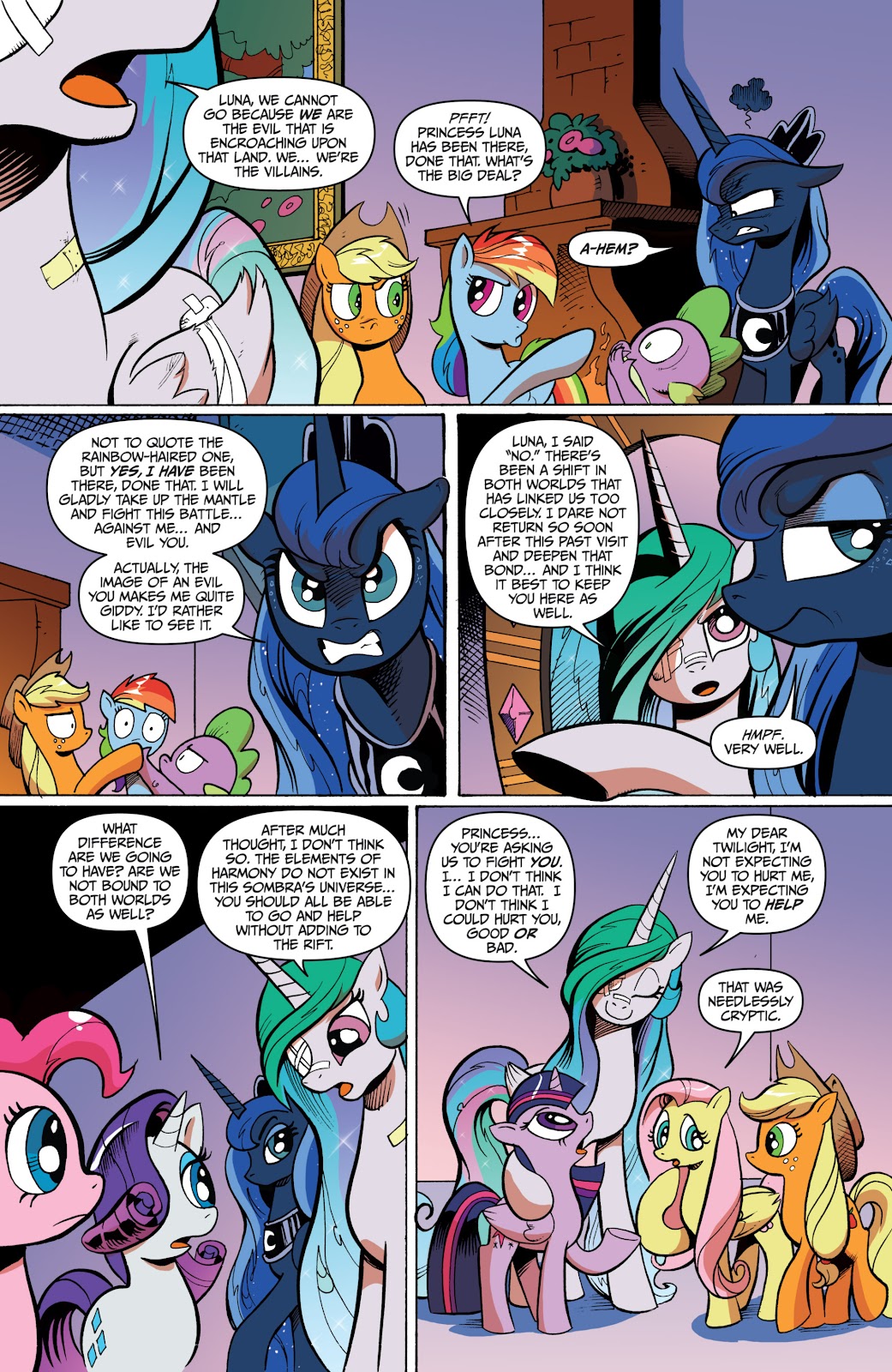 (“I’m not afraid of you anymore! You will turn everyone back the way they were before you came back! These ponies are my true friends.”)