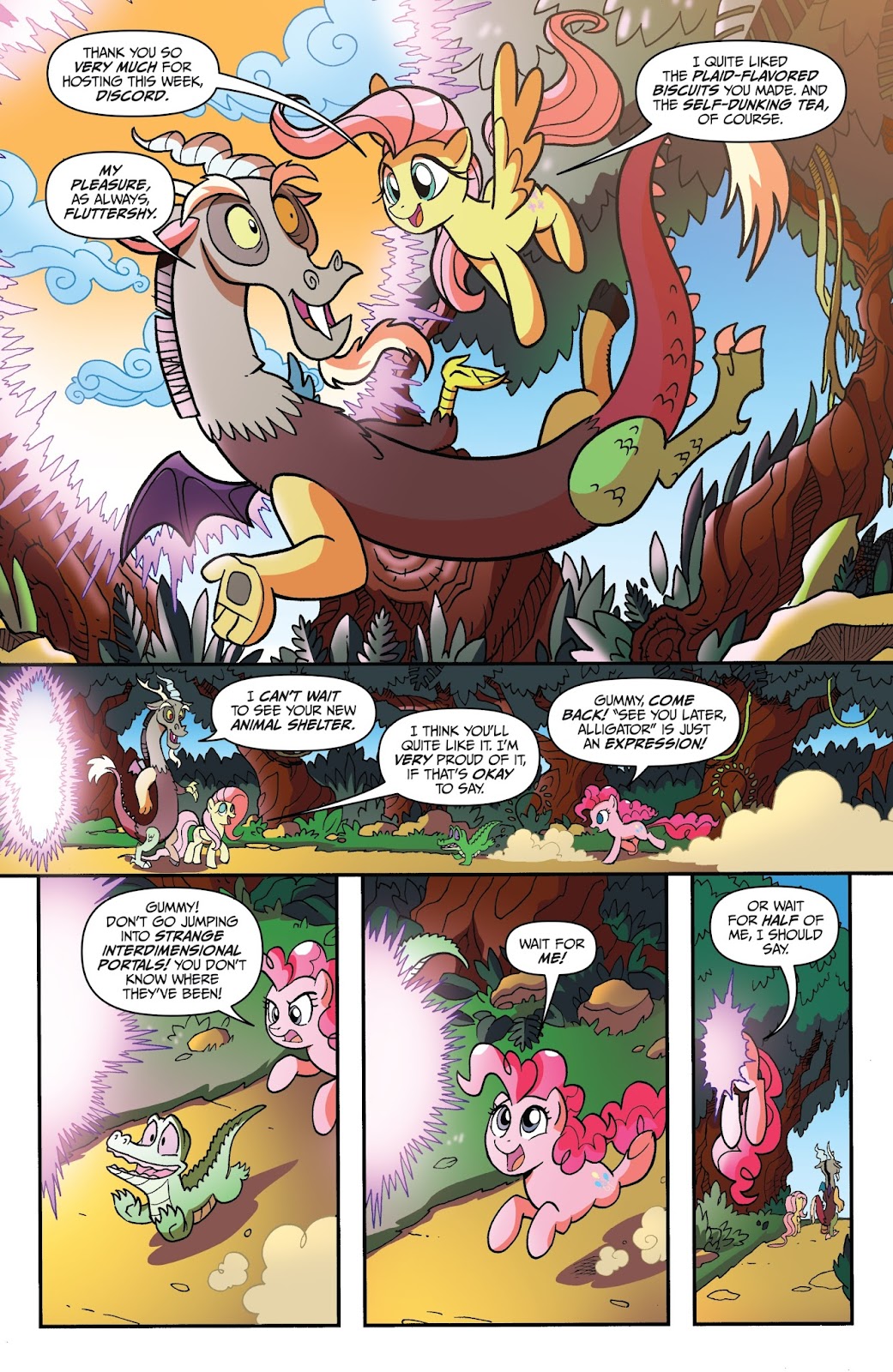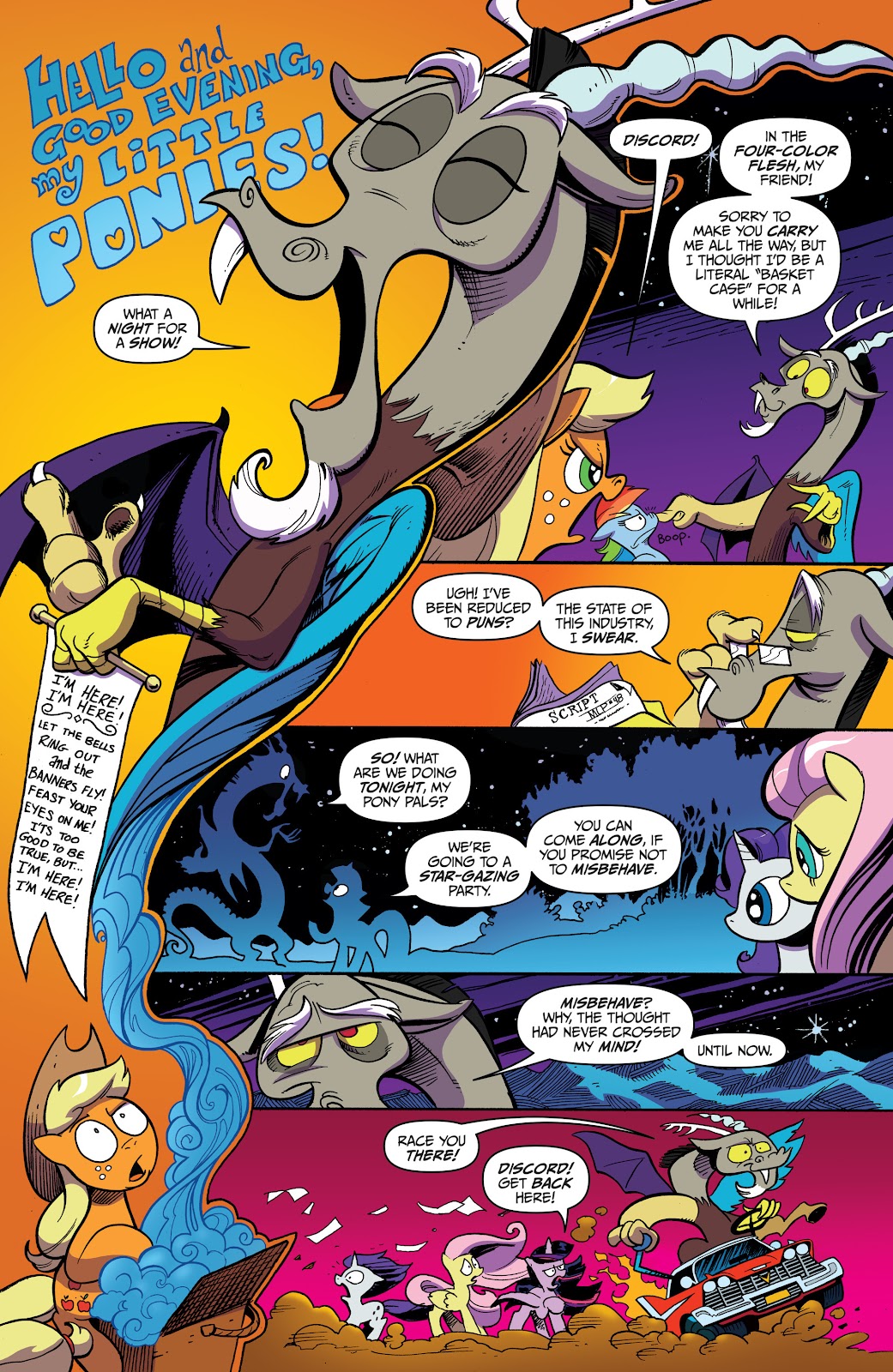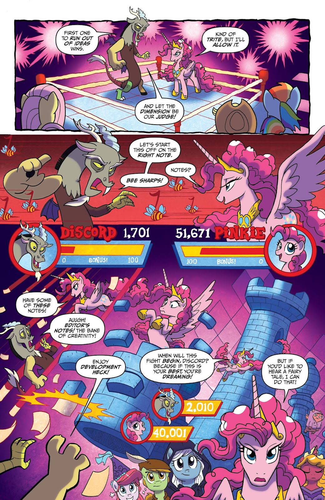 Speed: Discord likely scales to immeasurable speed through multiple different feats and characters. His travel speed scales to his combat and reaction speed, since he reacted to Cosmos tearing through the space-time of Limbo and his realm to get to his home; and there's no reason to assume his energy beams and other magical abilities aren't at least the same speed as his flying, since it's all coming from his magic which is a life-force that is necessary for all of his abilities. He also once flew so fast he went back a week in time, which should be immeasurable in nature. Discord should also scale above the Pony of Shadows who was able to absorb all of the light in the sky, and was going to physically go to every reality and destroy them. His speed should be above Celestia’s dream wave, which was able to affect multiple dreams at the same time across Equestria.