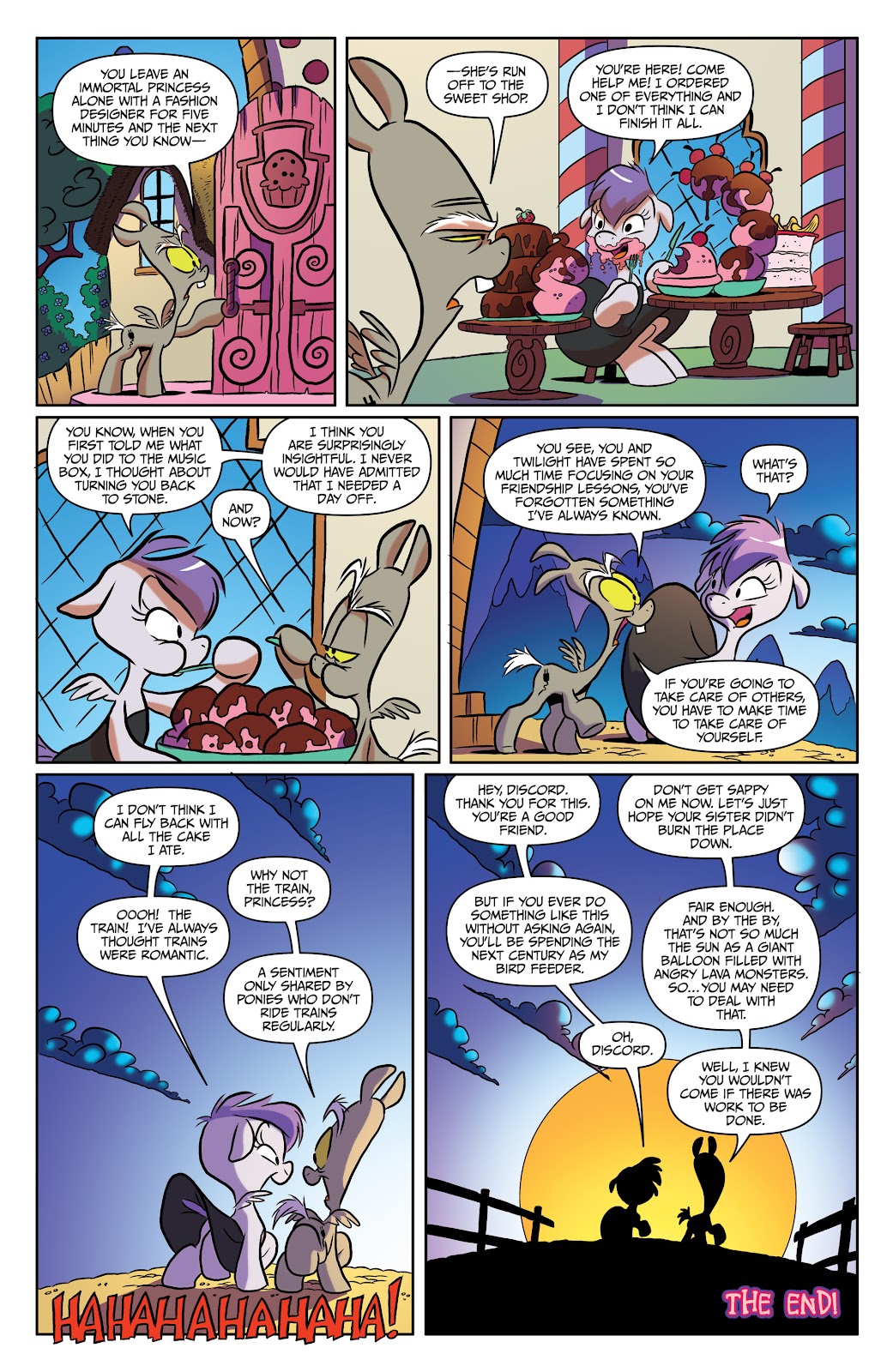 Ultimately, Discord proved to be the hero Celestia thought he could be. He was instrumental to saving Equestria many times, and a good friend to the ponies he came to care for. His bond with Fluttershy grew to be quite strong, and he was always there to protect her in a time of need. Equestria turned out to be a safer and happier place with Discord on their side, and he finally had the peaceful and happy life that he had once long ago. It is a testament to the might of the magic of friendship, for harmony cannot be overcome, and the Lord of Chaos stands always ready to defend it and the ponies who live in the magical world of Equestria.