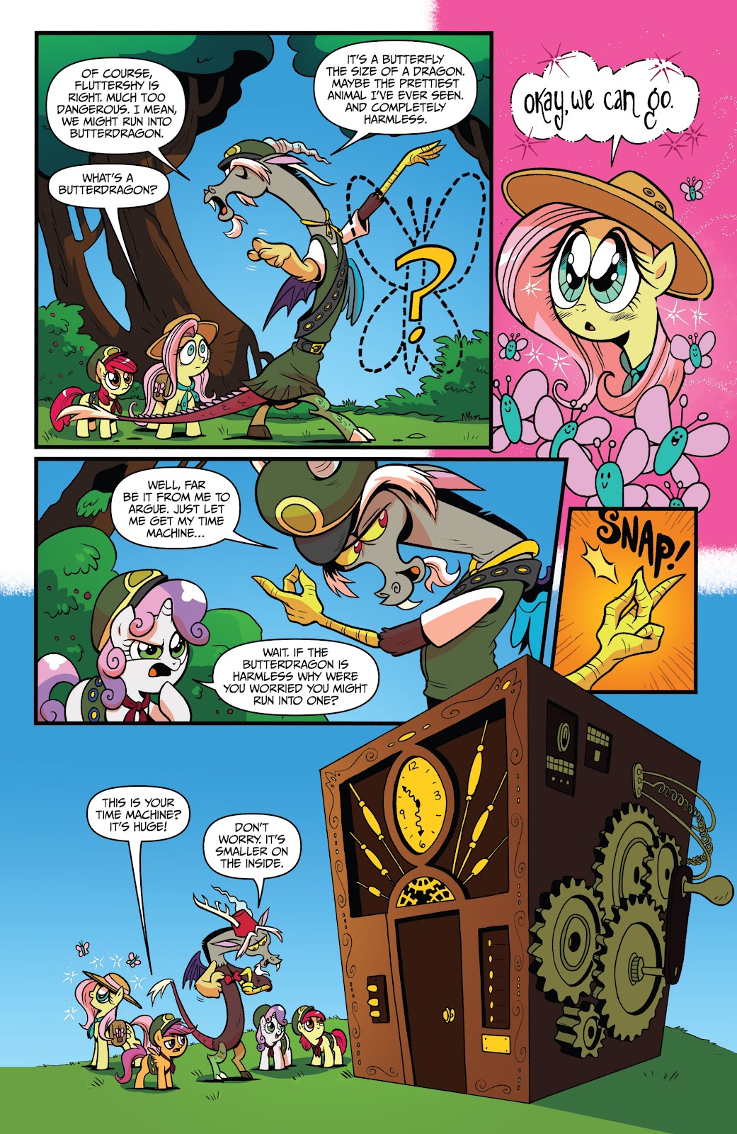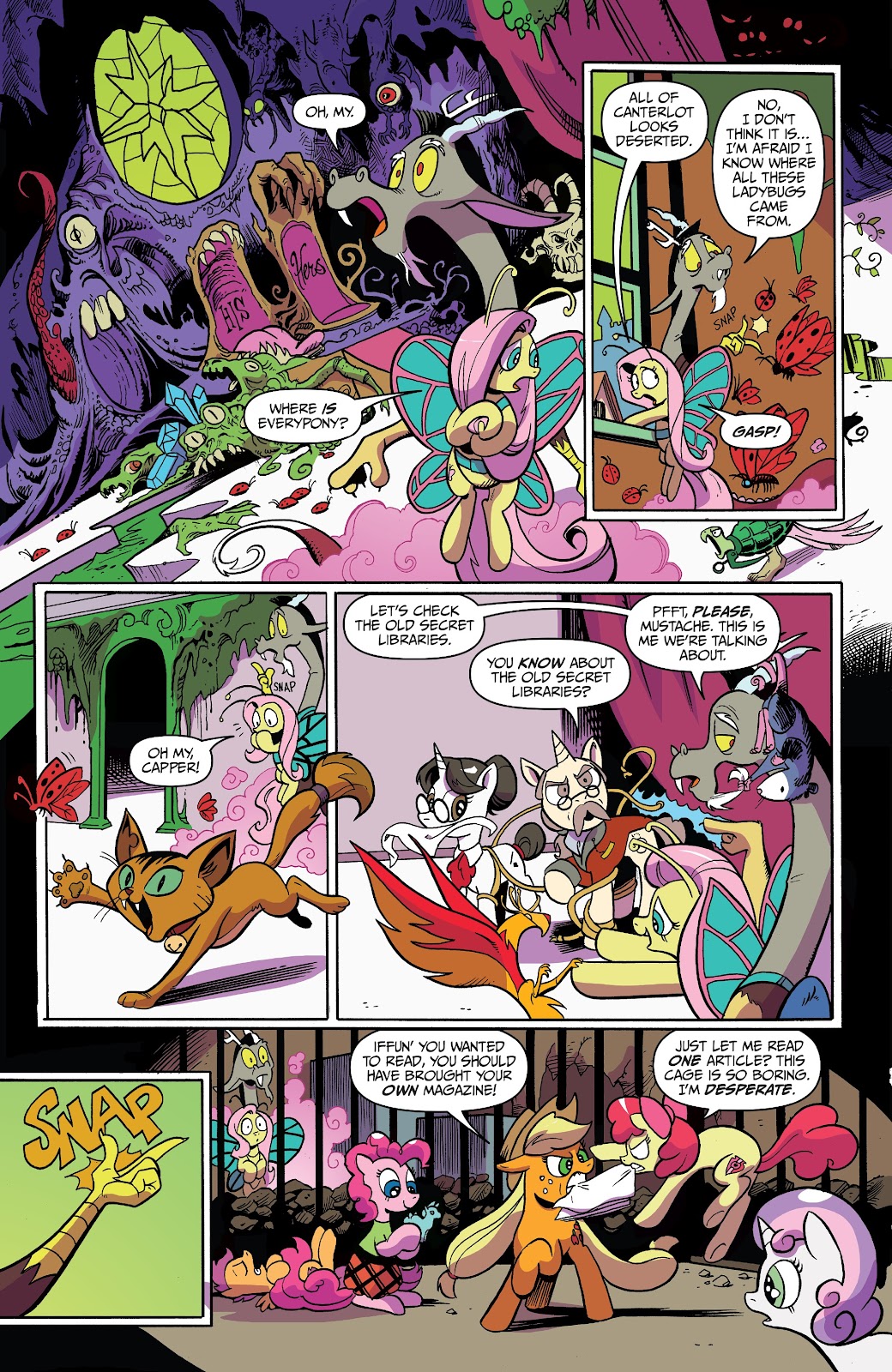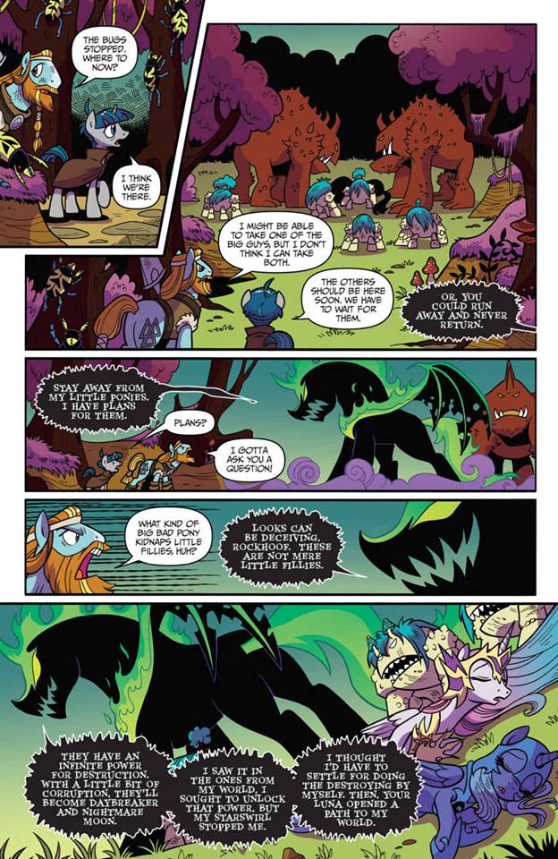 Intelligence: Intelligence would be high since he knows the math and technical science to create his time machine; the RPG feat of him having eyes and ears everywhere and having heard and seen everything ever said should be good enough to say that he can replicate any kind of knowledge reality has to offer, past, present, and future. This includes all spells shown and all math and science created. He's deceived entire nations into going to war with each other (Season 10 comics), and can manipulate ponies into betraying their nature.