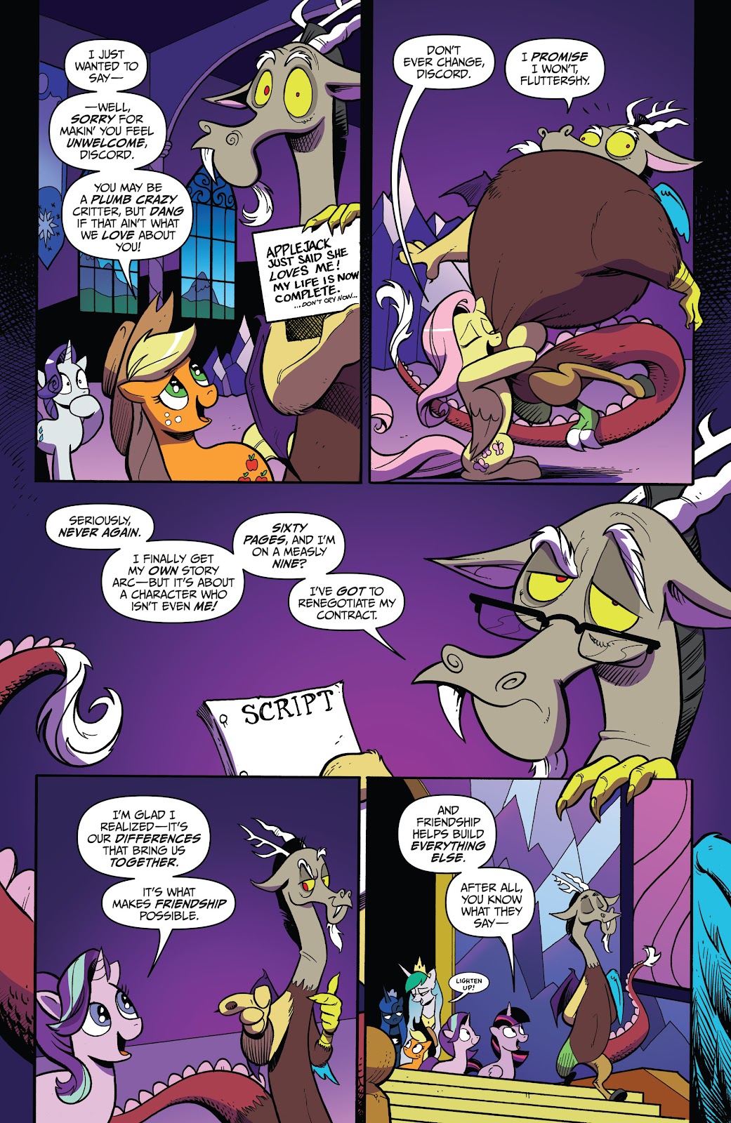 Ultimately, Discord proved to be the hero Celestia thought he could be. He was instrumental to saving Equestria many times, and a good friend to the ponies he came to care for. His bond with Fluttershy grew to be quite strong, and he was always there to protect her in a time of need. Equestria turned out to be a safer and happier place with Discord on their side, and he finally had the peaceful and happy life that he had once long ago. It is a testament to the might of the magic of friendship, for harmony cannot be overcome, and the Lord of Chaos stands always ready to defend it and the ponies who live in the magical world of Equestria.