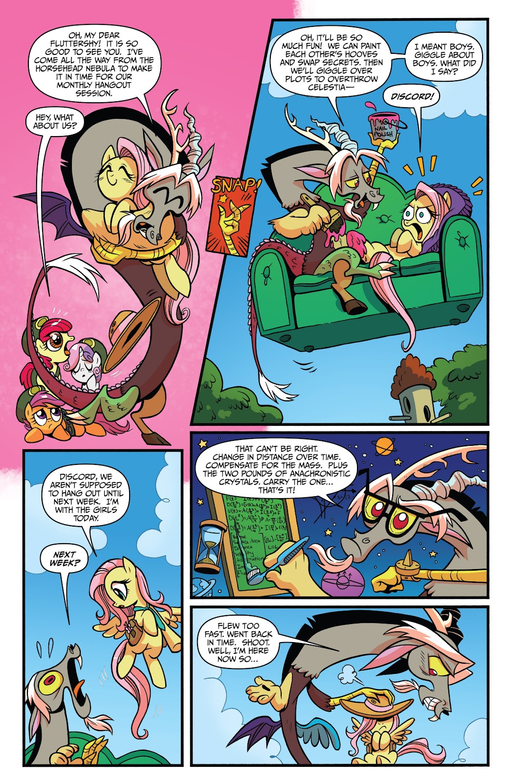 Speed: Discord likely scales to immeasurable speed through multiple different feats and characters. His travel speed scales to his combat and reaction speed, since he reacted to Cosmos tearing through the space-time of Limbo and his realm to get to his home; and there's no reason to assume his energy beams and other magical abilities aren't at least the same speed as his flying, since it's all coming from his magic which is a life-force that is necessary for all of his abilities. He also once flew so fast he went back a week in time, which should be immeasurable in nature. Discord should also scale above the Pony of Shadows who was able to absorb all of the light in the sky, and was going to physically go to every reality and destroy them. His speed should be above Celestia’s dream wave, which was able to affect multiple dreams at the same time across Equestria.